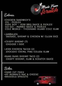 Join your neighbors for Food Truck Friday! The Made From Scratch Food truck is the perfect blend of Chef DJ Dallas Green’s love for music and food. Specializing in Comfort Food, The Made From Scratch Food truck focuses on savory and sweet dishes and desserts to create a fine dining experience.